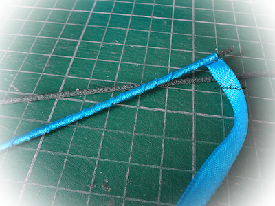 Odpowiedniej długości drucik delikatnie zmaruję początek klejem na gorąco, przyczepiam wstążkę i zaczynam okręcać. Na koniec także używam odrobiny kleju.